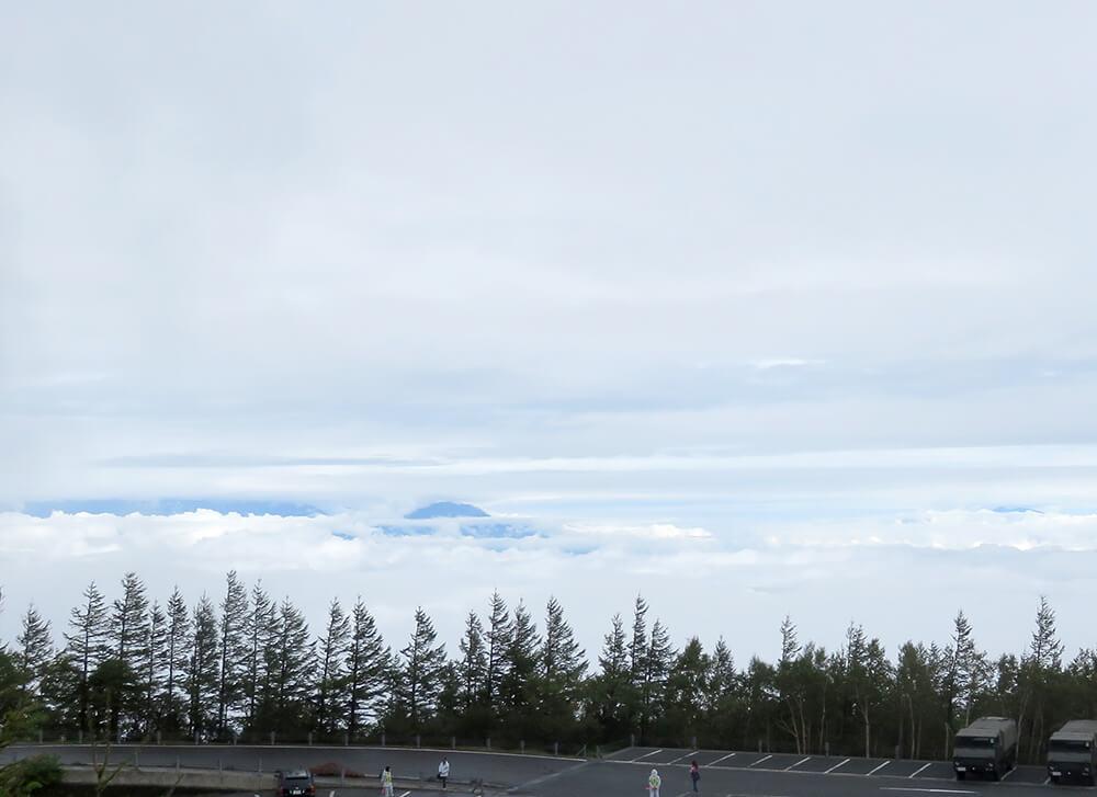 車からは木々の間から雲海や遠くの山々を望むことができます。スバルライン料金所から目的地の富士山五合目駐車場まで約30~40分で到着します。