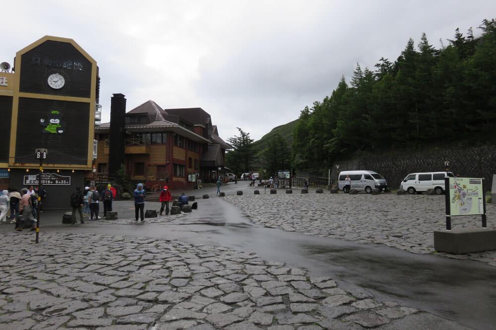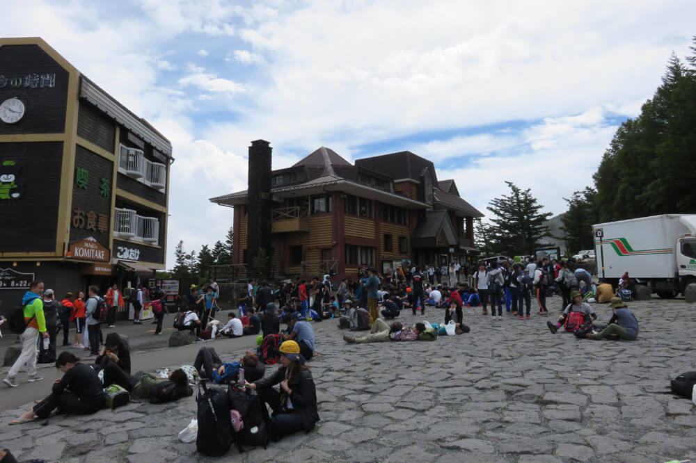 おみやげ屋さんが立ち並んでおり、平日にも関わらず登山客や観光客が大勢居ります。外国人や観光客の方はTシャツやサンダルなどの軽装で登山者とのギャップ感があります。