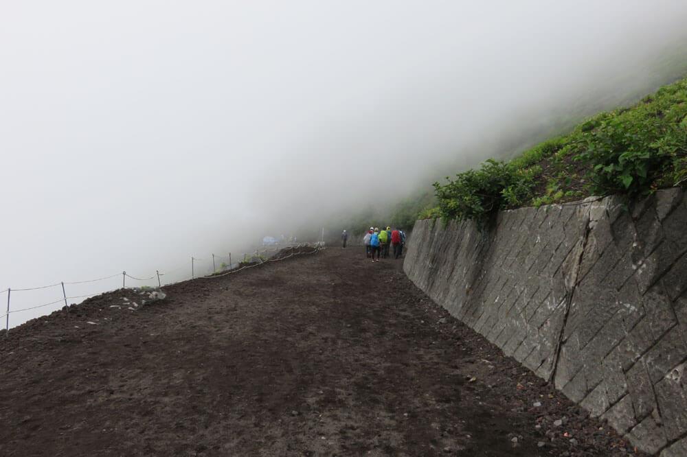 上の写真↑↑ 霧の奥が六合目になりまが、霧が濃かったので六合目の写真はありません。