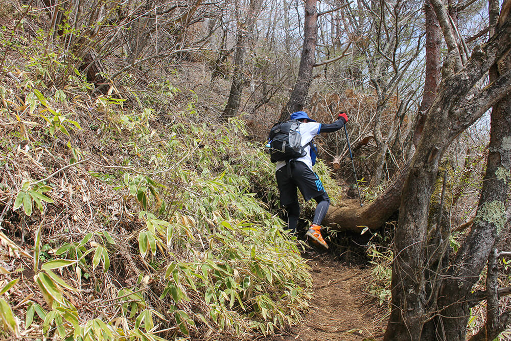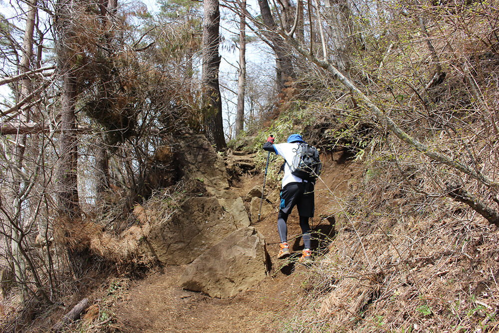 登山開始から約1時間半、これまで歩きやすかった道も徐々に険しくなってきました。しかし険しくなっていくということは頂上が近い証拠です。最後の力を振り絞って歩きましょう!