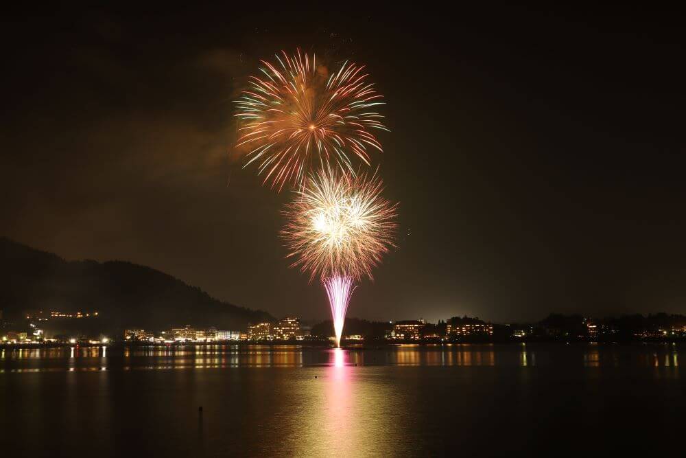 8月には毎年富士五湖で花火大会が開催されます。山中湖の「報湖祭」、西湖の「竜宮祭」、本栖湖の「神湖祭」、精進湖の「涼湖祭」、そして河口湖の「湖上祭」と、5夜連続の花火大会です。河口湖の夏の風物詩として有名なイベントなので、日程が合えばブルーベリー狩りの帰りに見に行くことをおすすめします。
