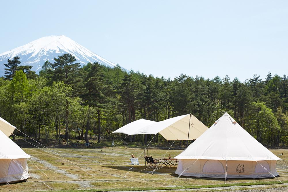 キャンプのレンタルギアはBEAMSセレクトのギアを使うことも可能なほか、富士山麓でしか体験できない溶岩洞窟や林道を散策するツアーも実施しています。