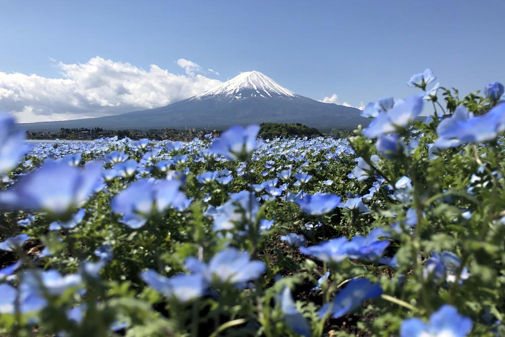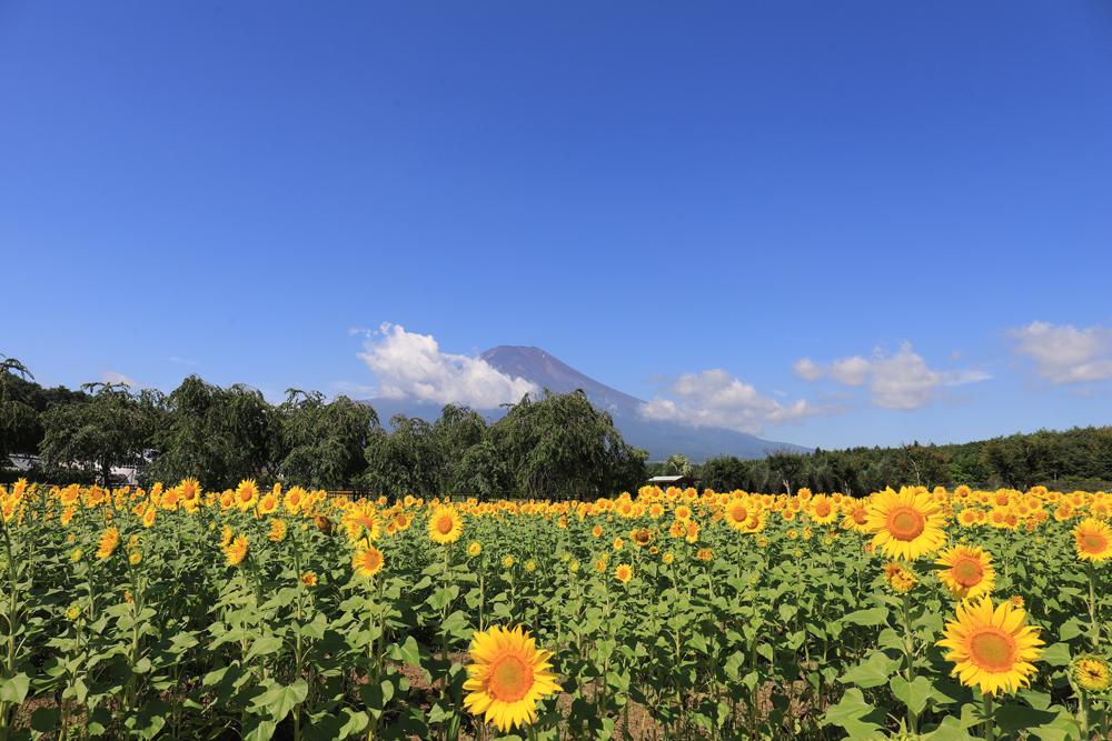 広大な園内では、春にはチューリップ、初夏にかけてネモフィラやはかすみ草、夏にはひまわり、秋にはコスモスや蕎麦の花と、いつでも綺麗な花畑と富士山が広がる風景を堪能することができます。