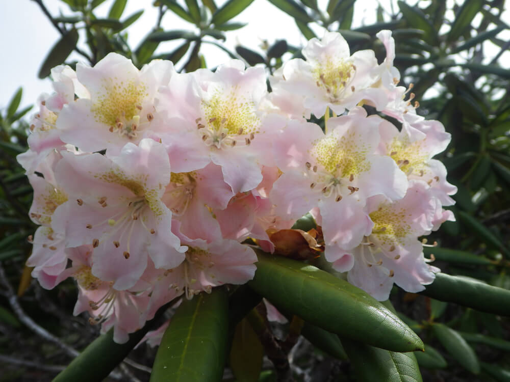 木の高さは1m前後のものが多く、北風の厳しい場所で時間をかけてゆっくりと成長し、淡いピンク色の花を咲かせます。