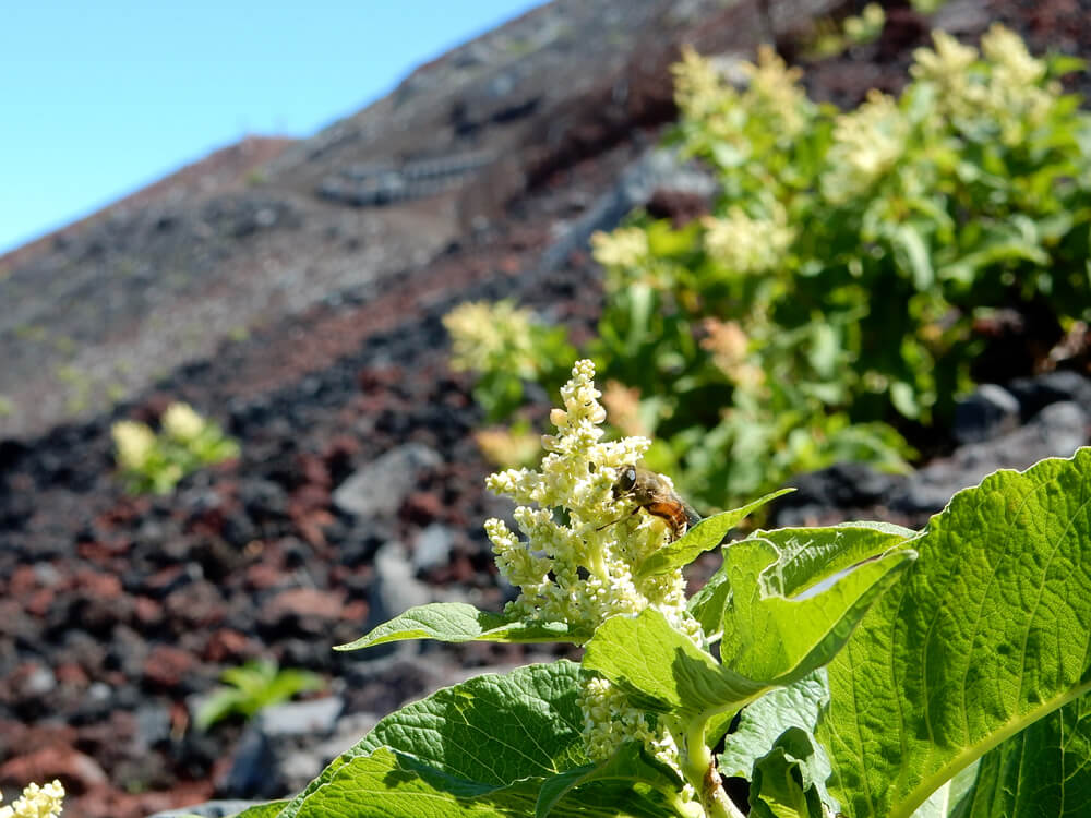 山麓で見られるイタドリは、背が高く茎が直径1cm以上ありますが、五合目周辺のイタドリは背が低く、茎が細いです。