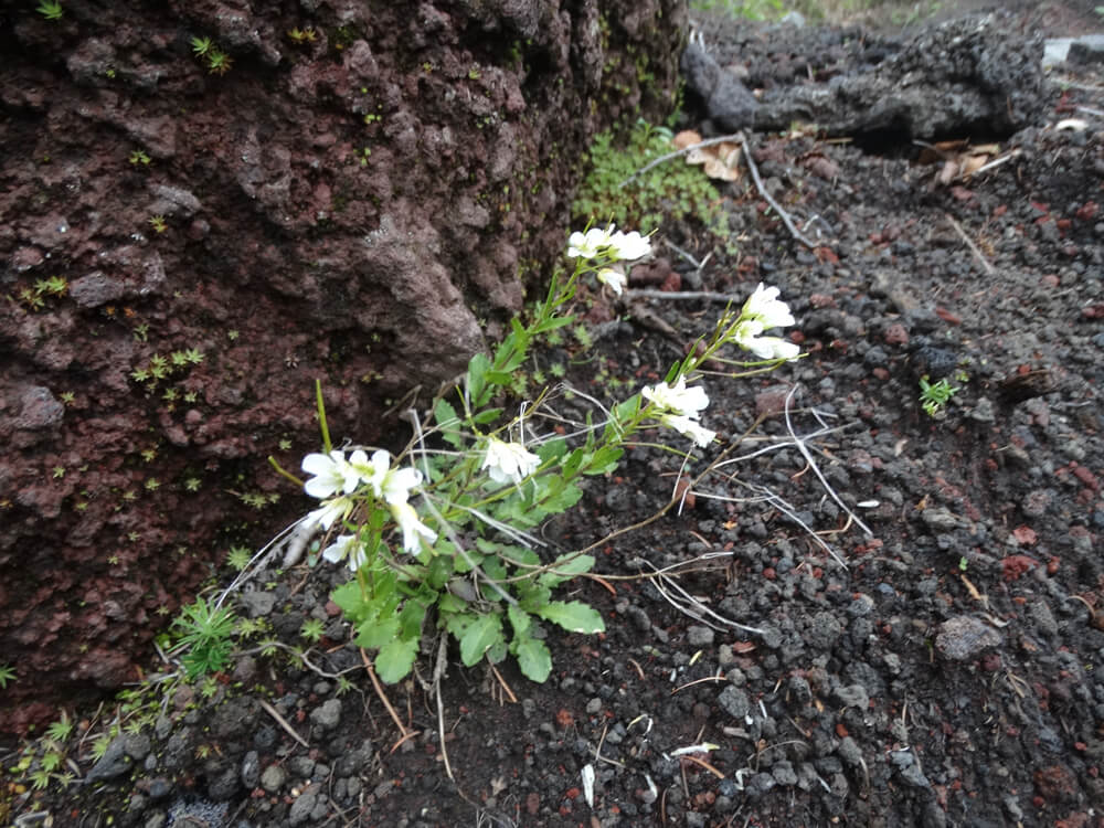 富士山の唯一の固有種です。茎の上部に咲く花は純白で、冬でも葉を枯らさない珍しい高山植物でもあります。