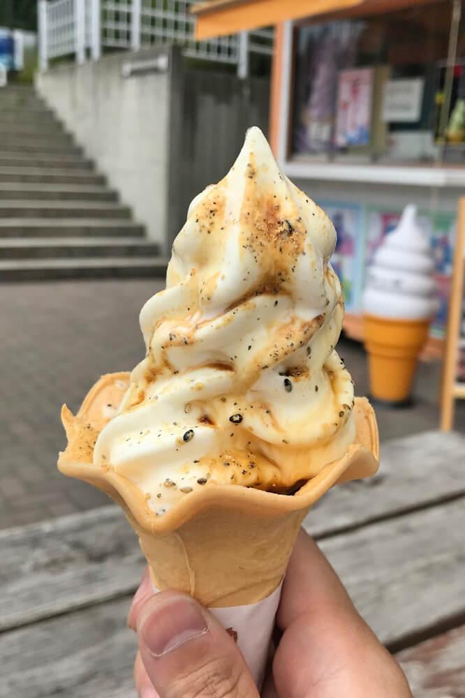 河口湖駅前のユニークなソフトクリーム!吉田のうどんソフト【ふじさんプラザ】