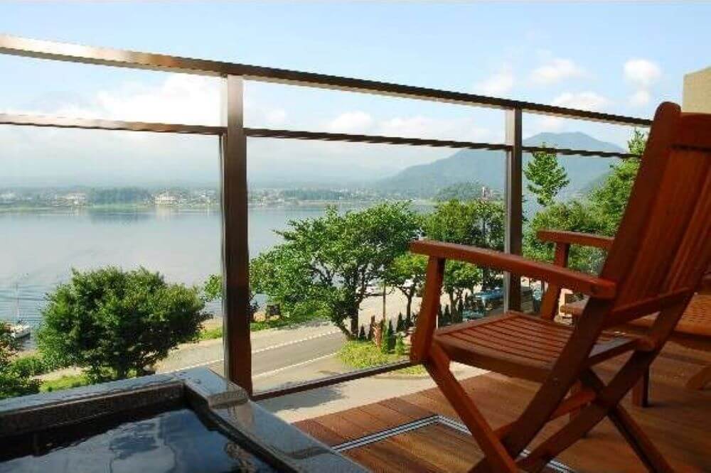 赤ちゃんのお風呂が心配な場合は、客室露天風呂付きのお部屋がおススメです。河口湖畔にあるので河口湖や富士山の景観を楽しむこともできますよ。