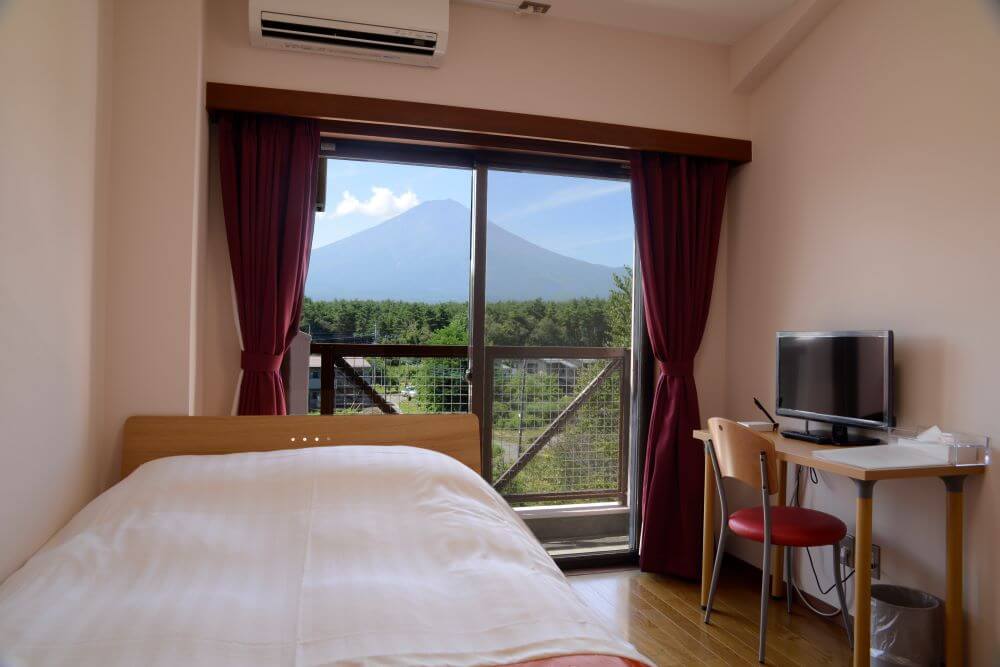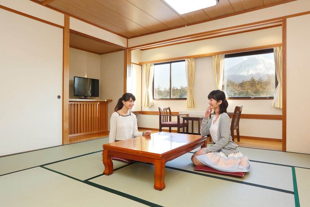 お部屋は和室で、富士山を見ることができます。