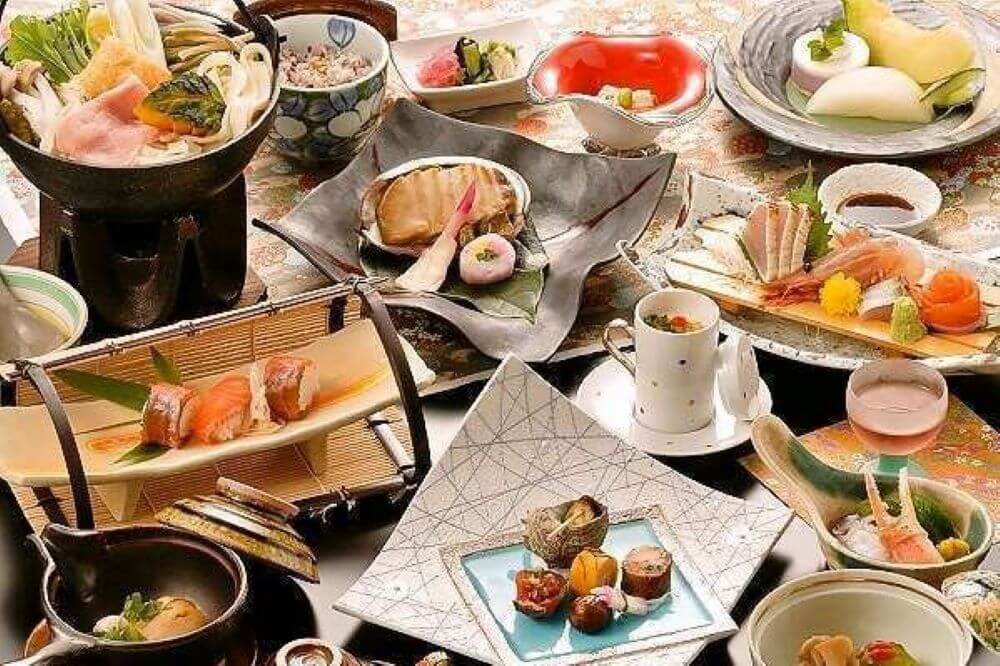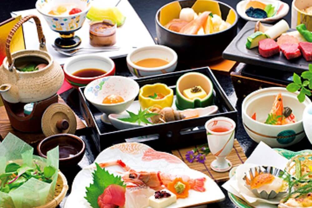 客室と温泉から河口湖と富士山が一望できる河口湖畔のホテル「秀峰閣湖月」は、絶景のパノラマだけでなく、絶品の会席料理を味わうこともできる宿です。年に8回のメニュー変更で、その時々の旬の食材をふんだんに使用した料理を提供してもらえるので、何度泊まっても新鮮に感じること間違いありません。