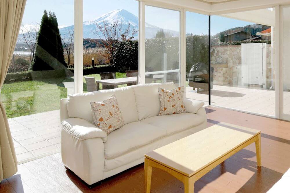 河口湖周辺にはコテージタイプの宿泊施設もたくさんあります。その中のひとつ、河口湖の北岸にある「コテージ ヴィラアンソレイユ」は、一棟貸し切ることができるため、お子様が元気に走り回っても周りを気にすることなく安心して宿泊することができます。