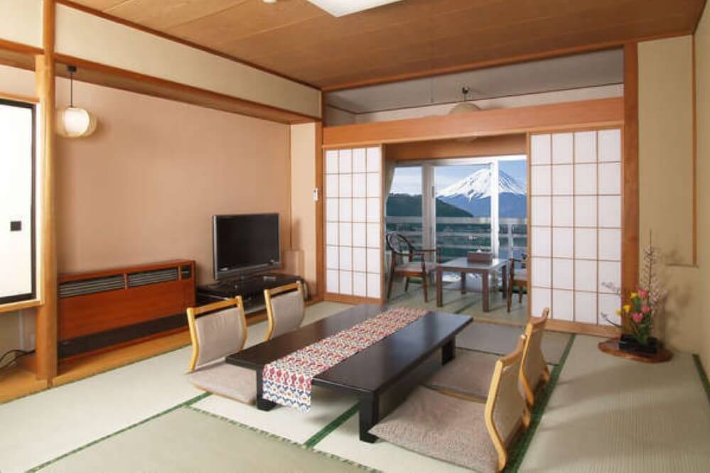 客室は和室で、富士山も望むこともできます。河口湖畔にも近いので河口湖周辺観光にもおすすめです。
