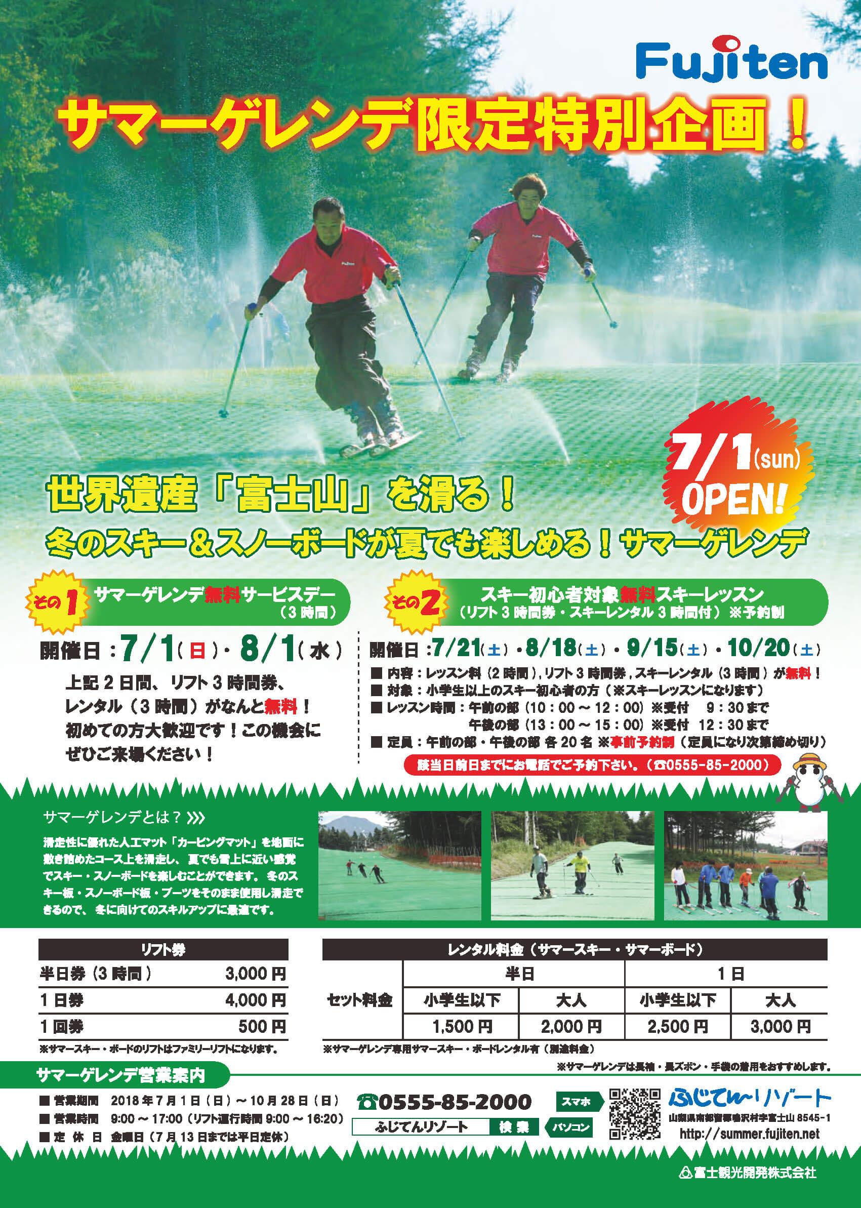 もちろん人気のグリーンシーズン中何回でも利用可能な「グリーンシーズンフリーパス」もあり、自分の予定にあわせて選ぶことができます。詳しくは現地(ふじてんリゾートTEL0555-85-2000)へ問い合わせてみましょう!