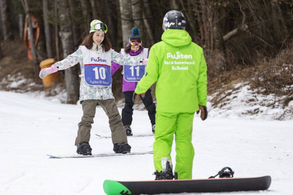 ふじてんは、今からスノボを始めたい、という方にも優しいスキー場。スクールが充実しており、初心者クラスでは滑り方を一から丁寧に指導してくれます。指導経験豊富なインストラクターのおかげで、1日で見違えるほど上達すると評判です。初心者クラスのレッスンを受講する場合はリフト料金が無料になりますので、気軽に参加してみてください。