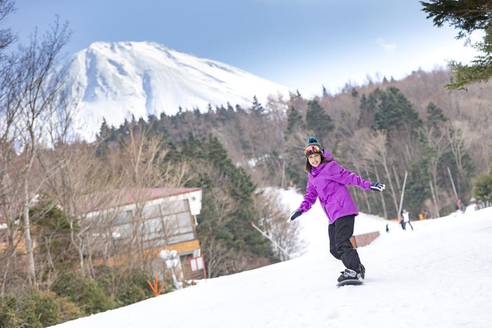 ウィンタースポーツに特化したリゾート施設で、富士山をバックにスキーやスノボードを滑ることができます。