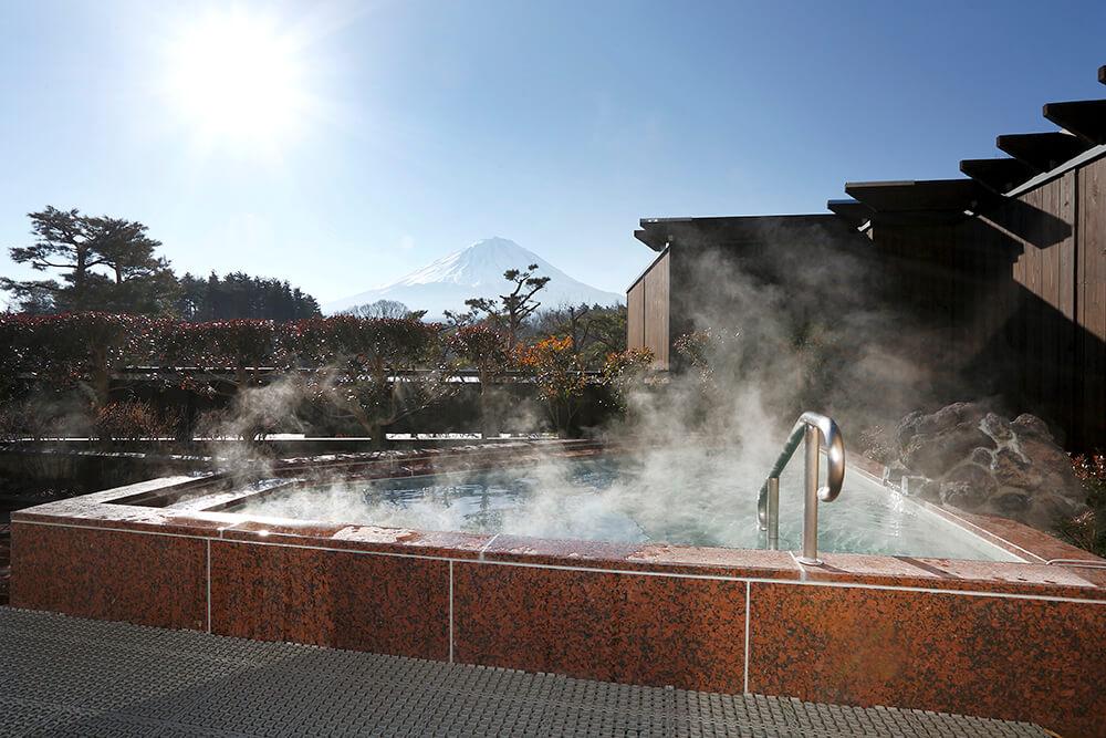 富士眺望の湯ゆらりには、富士山を眺められる露天風呂をはじめとする16種類の温泉があります。