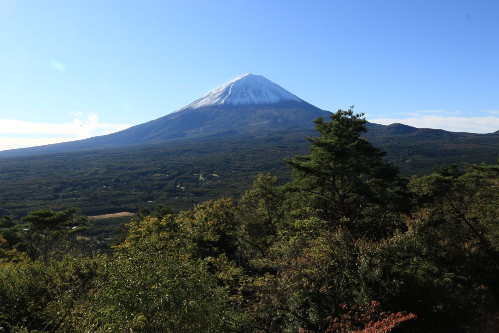 西湖の近くにある紅葉スポット「紅葉台」。展望台からは富士山と紅葉、青木ヶ原樹海が見渡せる絶景が広がります。また、紅葉台から15分ほど山を登った場所にある「三湖台」は、その名の通り西湖・精進湖・本栖湖の3つの湖が見えるビュースポットです。健脚な方は三湖台まで行くことをおすすめします。