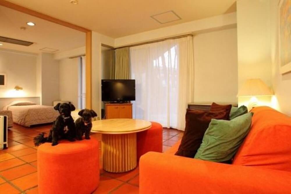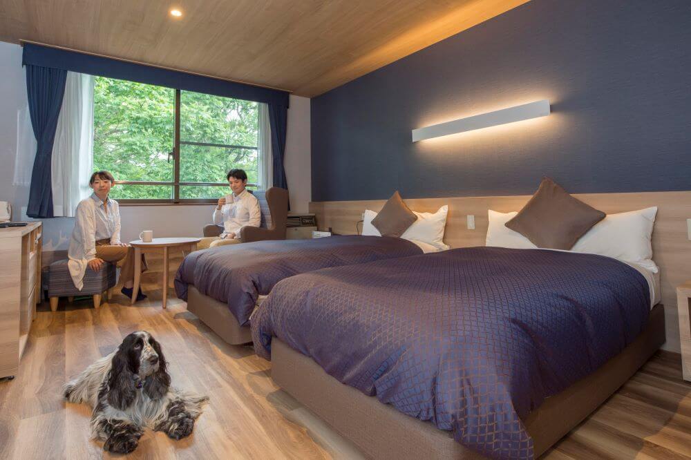 河口湖の森の中にある「フジプレミアムリゾート」は愛犬連れにおすすめのリゾートホテルです。ペットと一緒に泊まれる「わんの宿」「わんヴィレッジ」があり、広い客室で愛犬と一緒でも快適にくつろぐことができます。