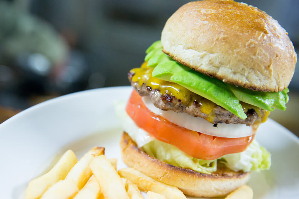 国道139号線沿いにある人気のハンバーガーショップ「ムースヒルズバーガー」。天然酵母のパンと粗挽きビーフ100%のパティ、その他こだわりの食材を使ったボリューム満点の絶品ハンバーガーをいただくことができます。