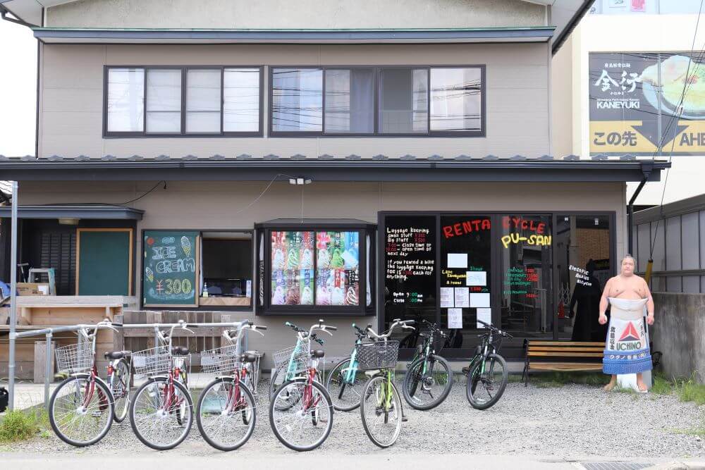 河口湖駅周辺にはレンタサイクルショップがたくさん