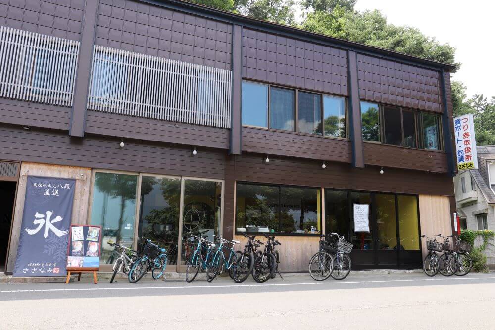 河口湖畔のレンタサイクルショップ「さざなみ」