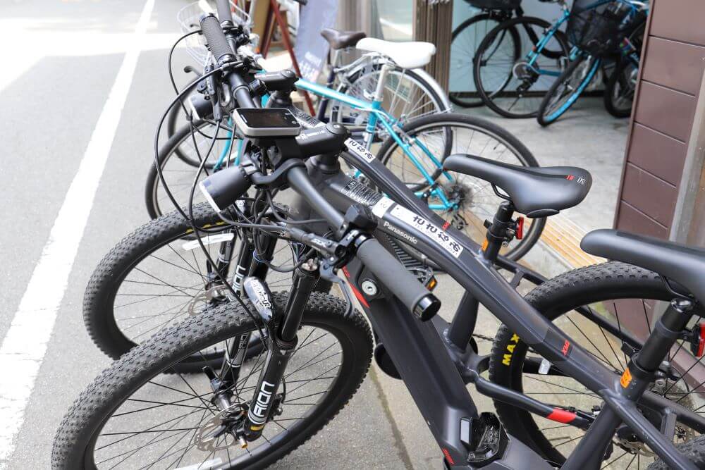 普通自転車や電動アシスト付マウンテンバイクを借りられる