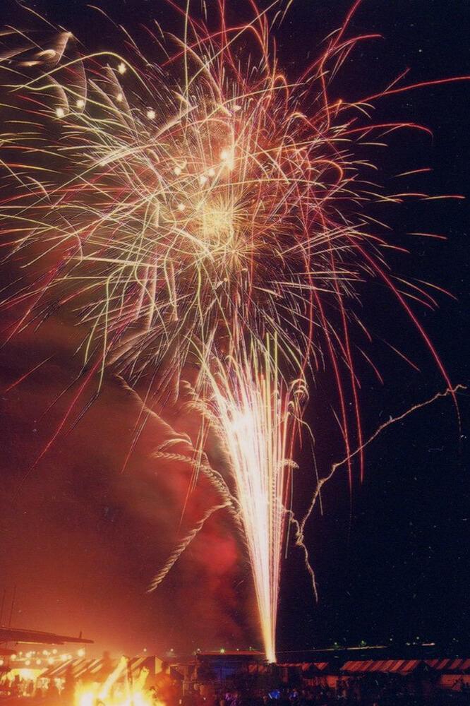 花火は20時頃から打ち上げられますが、お祭り自体は17時から行われており竹太鼓の演奏や、子供神輿、ジャグリングやファイヤーパフォーマンスによるショーが行われ、お祭りを盛り上げます。