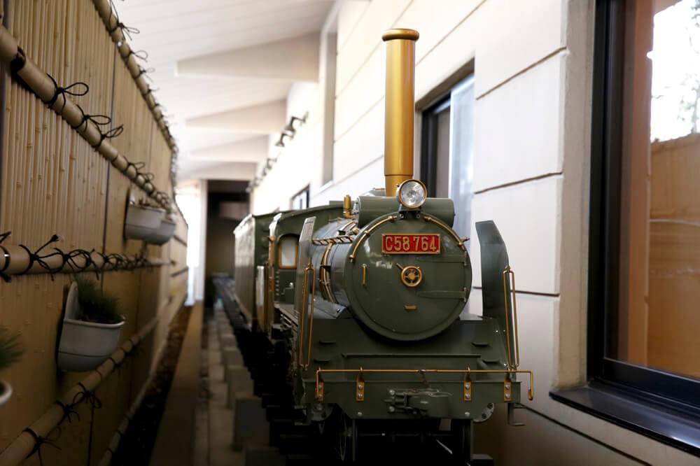 個室のお食事処「お狩場」は、ミニSLが料理を運ぶ演出が大人気のレストランです。