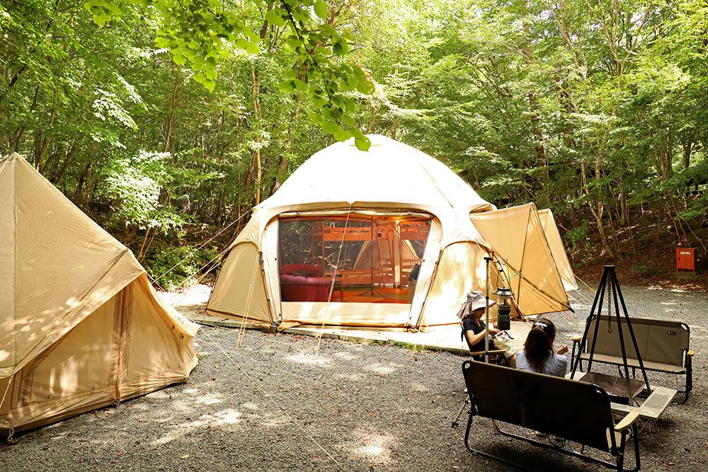 1日1組限定でグランピング体験ができる「ロゴスグラマラス」サイトレンタルパックなど多彩な楽しみ方ができます。富士五湖、特に西湖や精進湖の観光の起点としてぜひ利用してみるのはいががでしょうか。