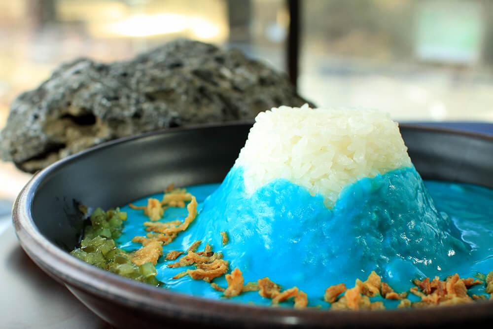また、北館には富士五湖周辺の観光情報や富士山グッズが充実したお土産屋さん、さらに食事が楽しめるカフェなどが揃っています。カフェ「Lava Café」では今年の春から登場した話題の青色のカレー「富士山カレー」を味わう事ができます。見た目インパクト大のこのカレーも必見です!