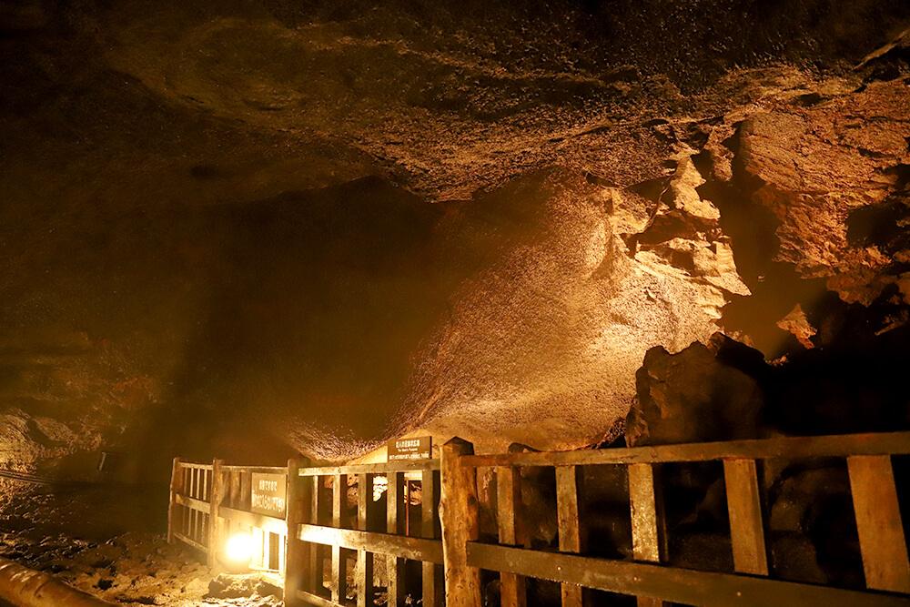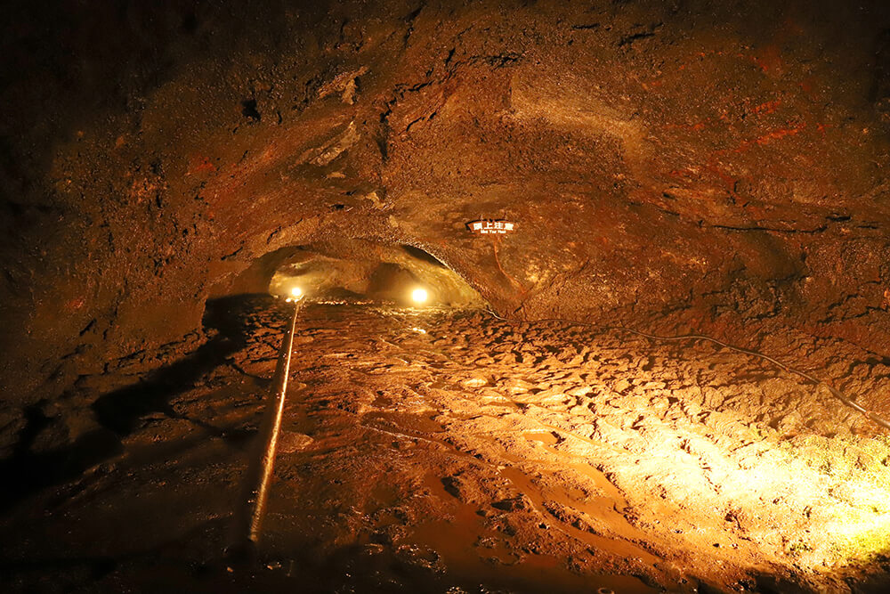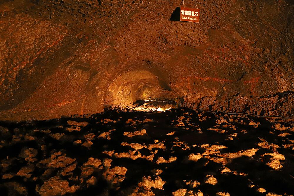 洞穴の内部には「溶岩ドーム」や「溶岩鍾乳石」などが多数あり、かがまないと前へ進めない低い場所もあるので、ヘルメット着用必須です。気を付けながら奥へと進みましょう。
