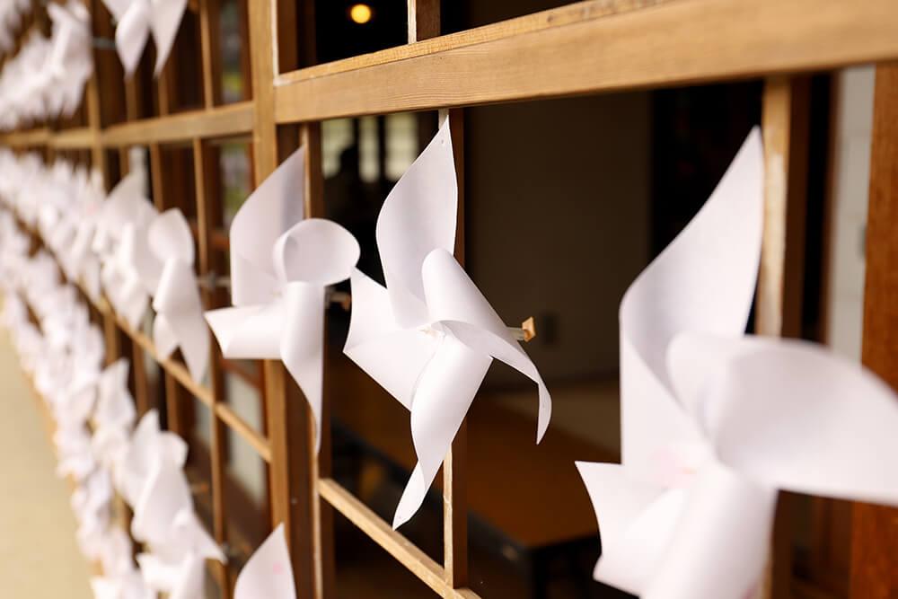 施設内にはこの時期、白い風車がたくさん飾られた「くつろぎ屋」や、今では懐かしい「水車小屋」、この季節ならではの「風鈴」が飾られていたりと集落を歩くだけでも「涼」を感じられるスポットがたくさんあります。夏休み期間中には「夏の風物詩」のイベントが多数用意されています。どこか懐かしい日本の夏をぜひ体験してください。