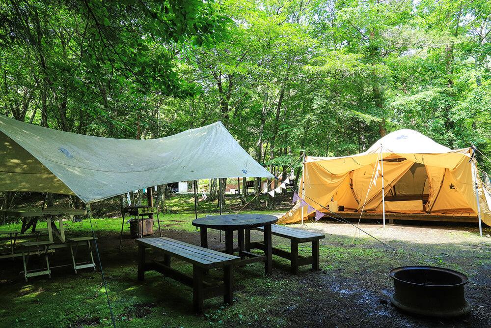精進湖から歩いて3分、数年に一度富士五湖に出現する幻の湖「赤池」のほとりにある隠れ家的キャンプ場の「CAMP AKAIKE(キャンプあかいけ)」。広大な敷地にはオートサイトやバンガロー、また初心者でも安心のスペシャルサイトもあり、レンタルも充実しているため手ぶらでキャンプを楽しむこともできます。