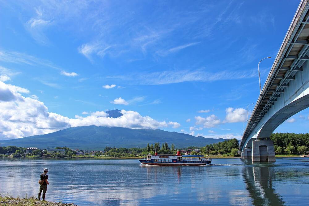 山中湖と同様に昔から観光地として広く知られている「河口湖」は、湖畔沿いにホテルや旅館、お土産屋などが立ち並んでいます。標高830mと富士五湖のなかではもっとも低い位置にあり、周辺距離が富士五湖一長い17.4kmです。松尾芭蕉の句や葛飾北斎の「富岳三十六景」にも登場する景勝地です。春の桜や秋の紅葉など四季折々の美しい風景や湖面に映し出される逆さ富士を楽しむことができ、釣りやボートなどのレイクスポーツも盛んです。