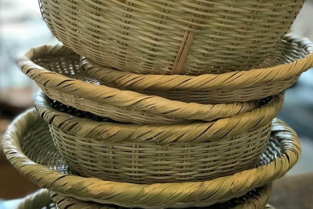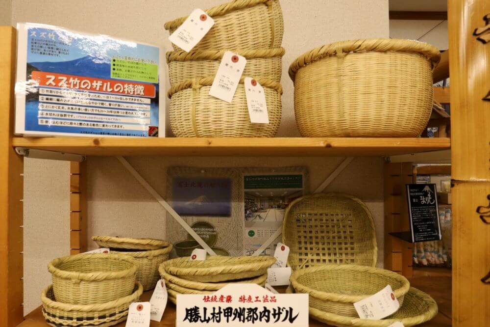 工芸センターでは完成品のザルなどの即売も行っています。製作体験をしたい方だけでなくお土産としてスズ竹の工芸品を購入したい方も足を運んでみて下さい。