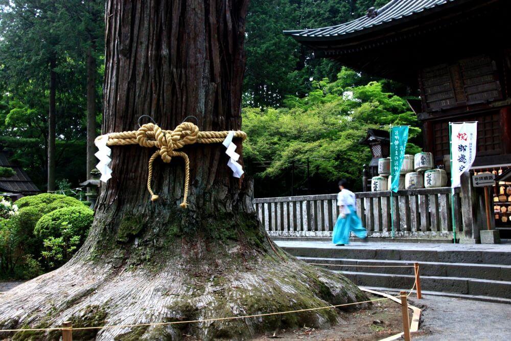 864年に起きた富士山の大噴火を鎮めるために建立された神社です。境内には樹齢1000年を超える巨大な七本杉があり、パワースポットとしても人気があります。特に7本の杉のうち、隣り合った2本は「縁結びの杉」と呼ばれています。