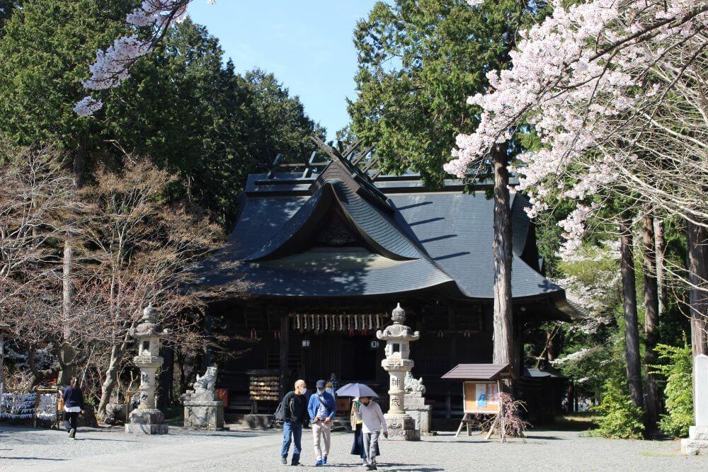本殿のほかに忠霊塔と、そこへ続く398段の石段「さくや姫階段」が有名です。忠霊塔と富士山を一望できる展望デッキがあり、春には桜が咲き誇る美しい景色が目の前に広がります。展望デッキは2022年に改修され広くなりました。神社への参拝と合わせて、絶景を写真におさめてはいかがでしょうか?