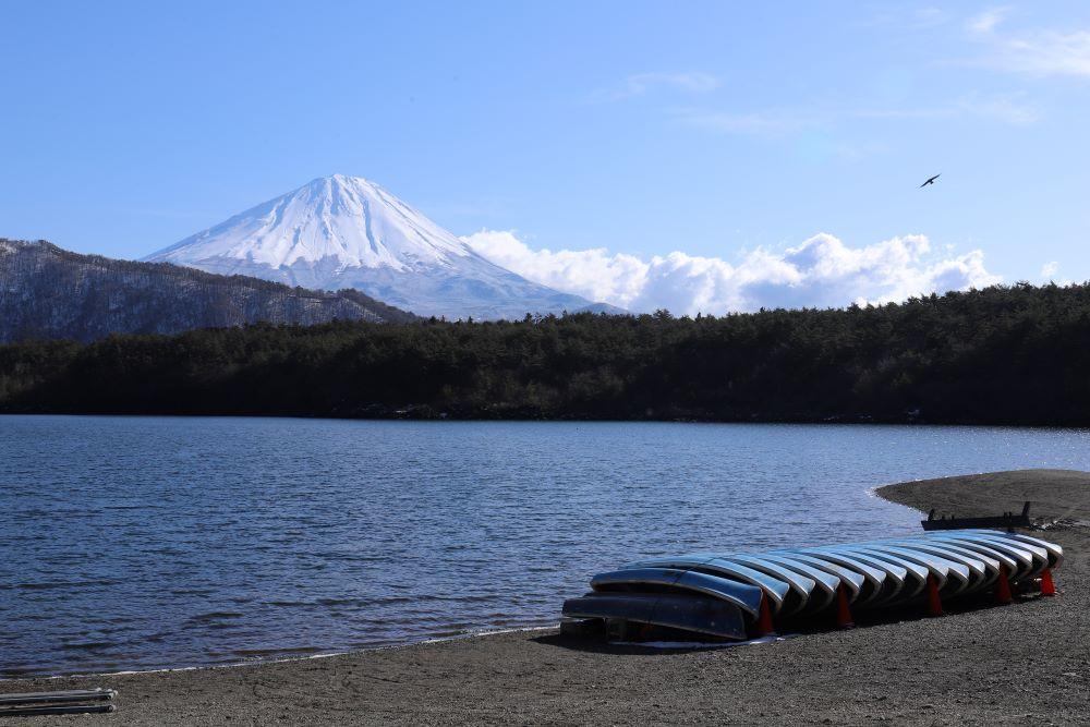山に囲まれた湖で富士山が見える場所は多くありませんが、根場浜からは湖越しのきれいな富士山を一望できます。周囲に光源がないことから、夜の星空を見に行くのもおすすめです。