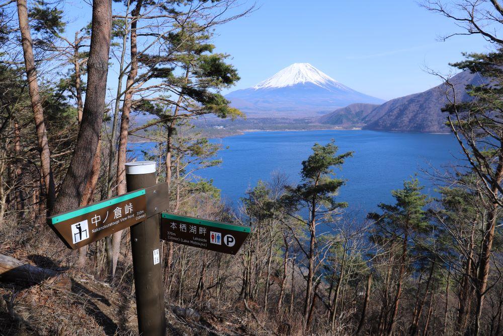 千円札の富士山は本栖湖の湖畔から山道を登った中ノ倉峠展望地の景色です。お札のイラストのようにきれいな逆さ富士は、晴れていてかつ無風の日でなければ見ることができないため運が必要です。もちろん湖畔からでも美しい富士山を見ることができます。中ノ倉峠登山道の近くにある湖畔のキャンプ場「浩庵キャンプ場」では富士山を目の前にキャンプを楽しめますよ。