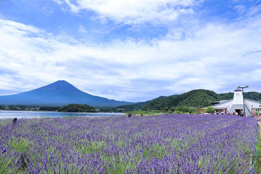 あたり一面を紫に染めるラベンダーは夏の訪れを告げてくれます。ラベンダーの奥にそびえる富士山も夏山の様相に変わりつつあり、この時期ならではの絶景が楽しめます。また、公園内にある河口湖自然生活館で販売されているラベンダーグッズも必見です。