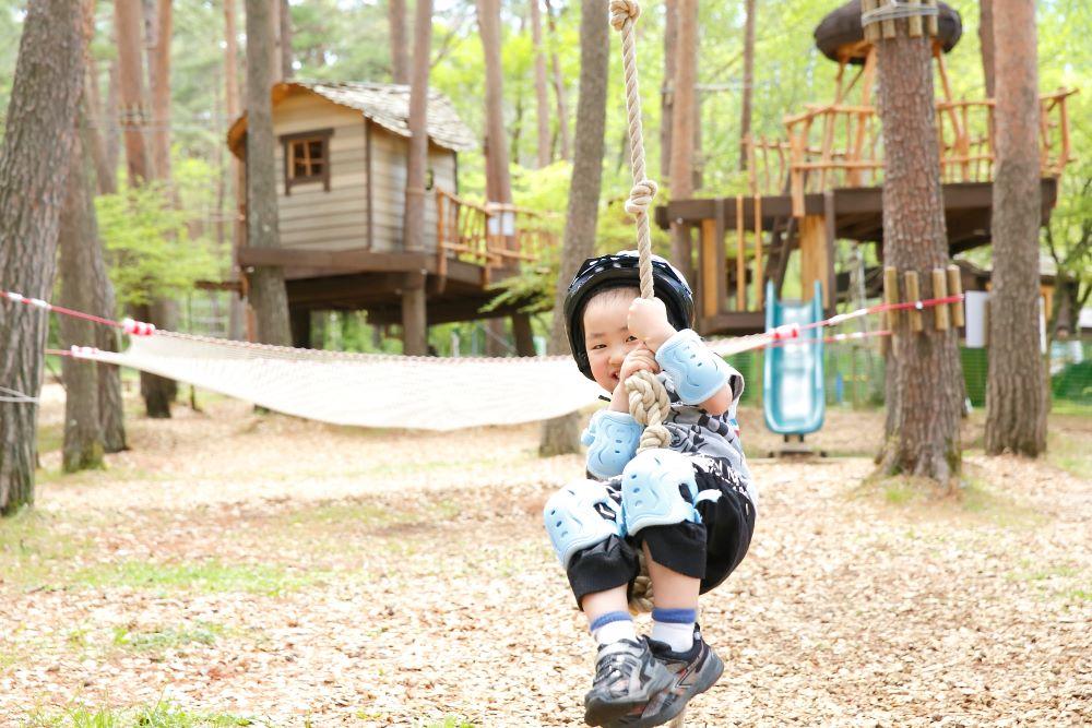自然の林を活かしたツリーハウスのエリアを探検する「自然探検基地どんぐりコース」や、巨大迷路、ジャンボ滑り台などファミリー向けのアトラクションが充実。またドッグランがありワンちゃんと一緒に入園して遊ぶことができるのも魅力です。