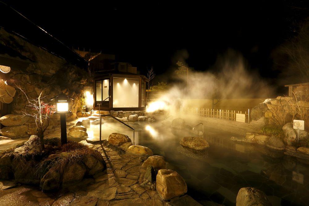 紅葉が見頃を迎える時期の富士五湖エリアは気温がかなり低くなり、特にライトアップが行われる夜は寒さを感じる日が増えてきます。外で紅葉を見た後は温泉でゆっくりと体を温めるのがおすすめですよ。富士眺望の湯ゆらりには全部で16種類のお風呂があり、香り風呂や炭酸泉など様々なお風呂を楽しみながら体の芯まで温まれます。