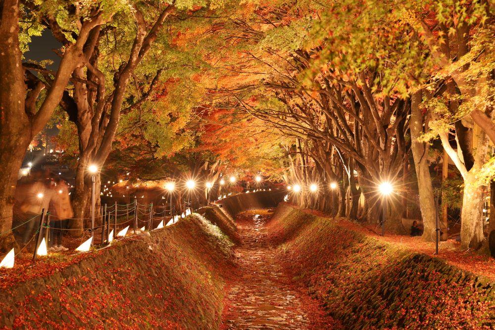 また、2022年にはもみじ回廊がリニューアルし、「奥の細道」という新エリアが延伸されました。ライトアップは日没後からですがイベント自体は9時から始まり、出店や紅葉狩りが楽しめます。
