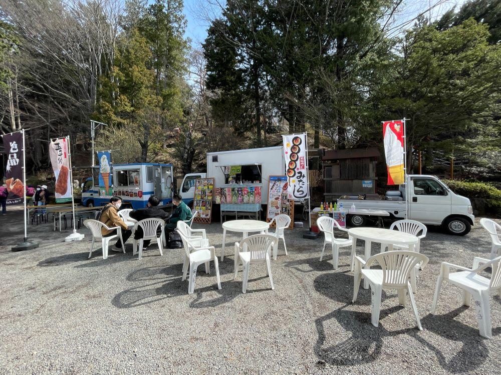 その代わりに新倉山浅間公園から徒歩15分ほどの場所にある下吉田第二小学校のグラウンドが有料駐車場として臨時解放されます。土日と混雑時にはそれ以外の駐車場も用意されますが、桜の時期は特に多くの人でにぎわいますので、余裕をもって到着することをおすすめします。