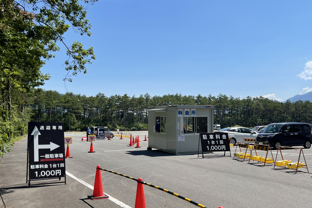 須走ルートを利用する時は、須走多用途広場の仮設駐車場を利用します。