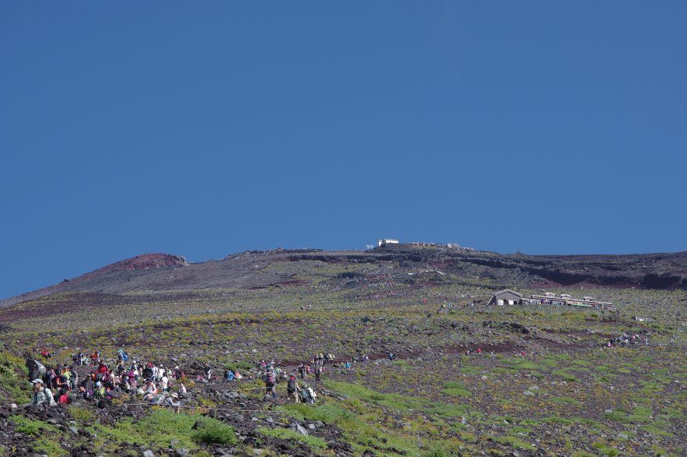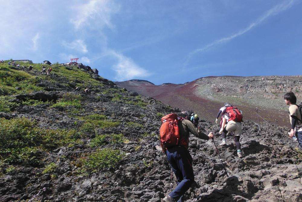 この時期は残雪も少なく気温も高くなるため、登山経験が少ない、また初心者の人でも富士登山にチャレンジすることができますが、お盆の前後や週末などは大変混み合い、富士山頂に向かう登山道には行列をなすこともしばしば見られます。