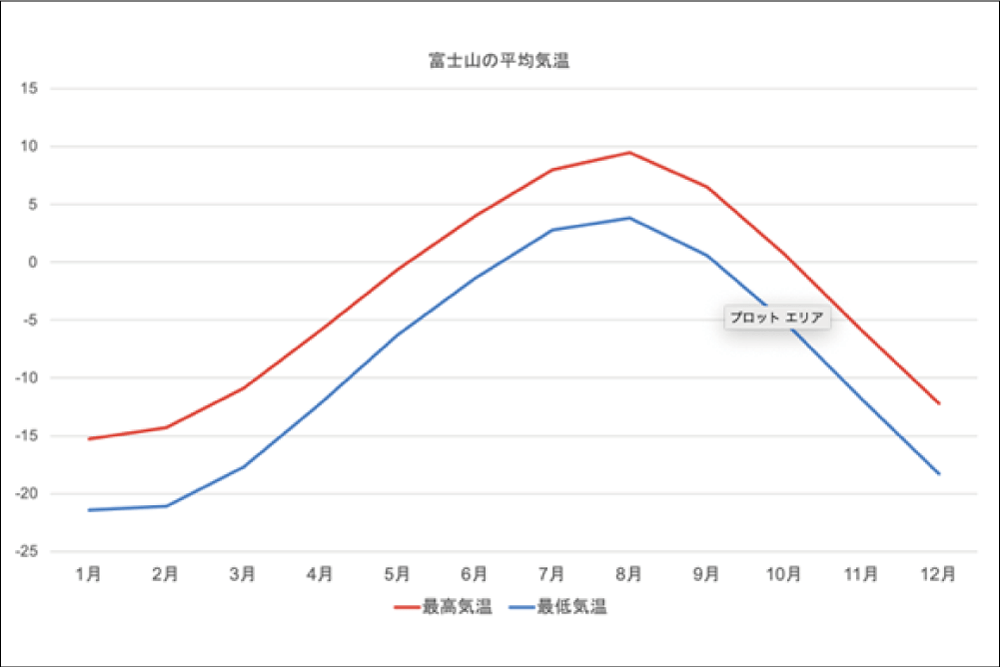 富士山の山頂の気温は夏でも低く、氷点下になることもあります。