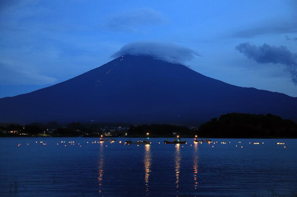 1,200艘以上の灯篭が河口湖の湖面に浮かぶ光景は幻想的で、河口湖の夏の風物詩のひとつにもなっています。
