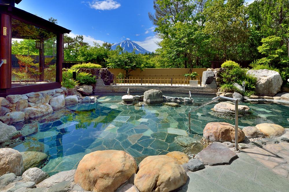 お風呂は全部で16種類、内湯からも露天風呂からも富士山を一望することができます。