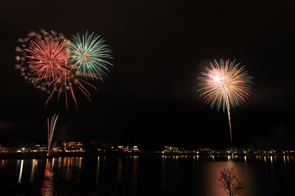 富士五湖で開催される花火大会を締めくくる催しとしても知られており、当日は約500発の花火が夏の夜空に打ちあがります。